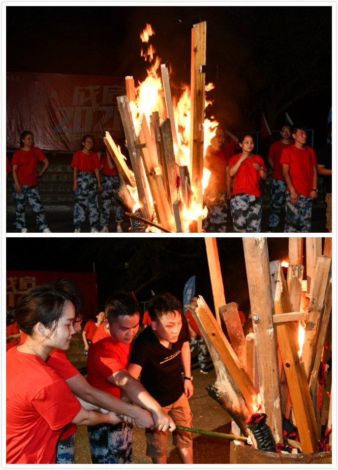晚上的篝火晚會(huì)將拓展訓(xùn)練推向了高潮,大家手挽手,坐在火堆旁,消除一身疲勞,在歡聲笑語(yǔ)中暢談未來(lái)。