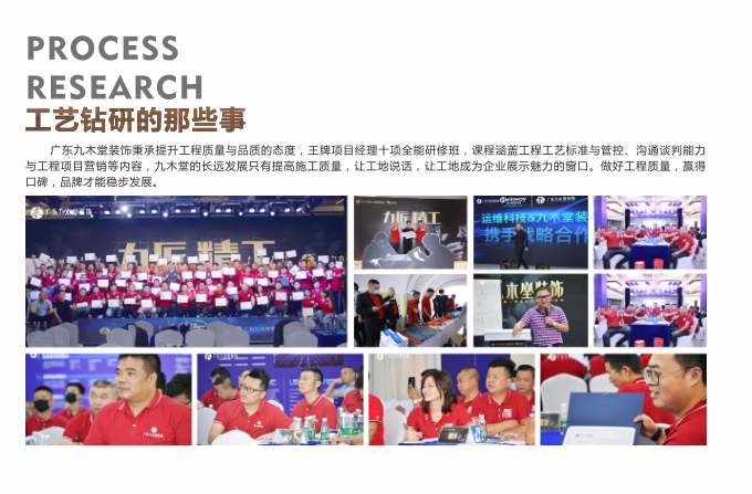 設(shè)計實力和工程實力,無疑是一家裝企品牌內(nèi)驅(qū),創(chuàng)新又是驅(qū)動品牌升級的重要力量,在廣東九木堂裝飾集團的企業(yè)文化內(nèi),我們堅持“九江精工,品質(zhì)交付”。不斷去學習新的知識點,并且把學到的新知識實際應(yīng)用到服務(wù)當中,九木堂的品牌戰(zhàn)略已升級,圍繞“學習-設(shè)計-工程-美學-服務(wù)”為品牌注入更多活力,不斷強化企業(yè)核心競爭力,推動室內(nèi)設(shè)計人居環(huán)境的發(fā)展。