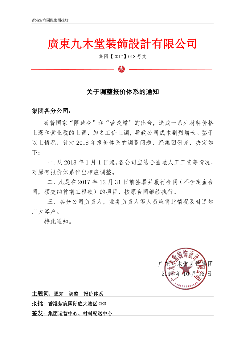 關(guān)于調(diào)整報(bào)價(jià)體系的通知